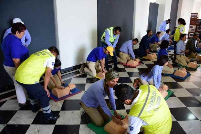 “Se les están dando cursos de primeros auxilios, manejo de heridas, hemorragias, fracturas, y un punto especial que es la aplicación de RCP para capacitación del personal del Ayuntamiento, el beneficio es tener conocimiento y ser primeros respondientes, ya que al final del día el personal de Parquímetros, como el personal de Turismo tienen mucho contacto con la ciudadanía, entonces ellos pueden llegar a presenciar en algún momento una situación de accidente, de algún paro cardiorrespiratorio y bueno, tengan las bases para saber qué es lo que pueden hacer ellos”, informó Guillermo Rodríguez, paramédico de Grupo Sirena.
