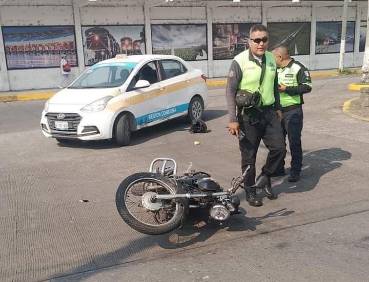 Córdoba, Ver.- Un motociclista resultó seriamente lesionado durante la mañana de este lunes, luego de ser impactado por un taxi en el barrio de La Estación del Ferrocarril, teniendo que ser auxiliado por paramédicos de la Cruz Roja y enviado a un hospital.