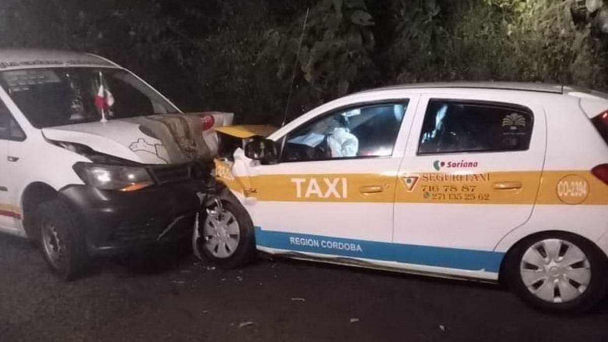 Huatusco, Ver.- El conductor del taxi marcado con el número CO-2394 de la ciudad de Córdoba, del sitio Seguri taxi, resulto lesionado junto con su pareja teniendo que ser atendidos por paramédicos de la Cruz Roja, debido a que la mañana de este jueves se impactaron de frente contra una camioneta propiedad de Galeras del pollo, cuando ambas unidades circulaban sobre la carretera federal Fortín-Huatusco a la altura del libramiento de Huatusco por la entrada del cerrito de Guadalupe.