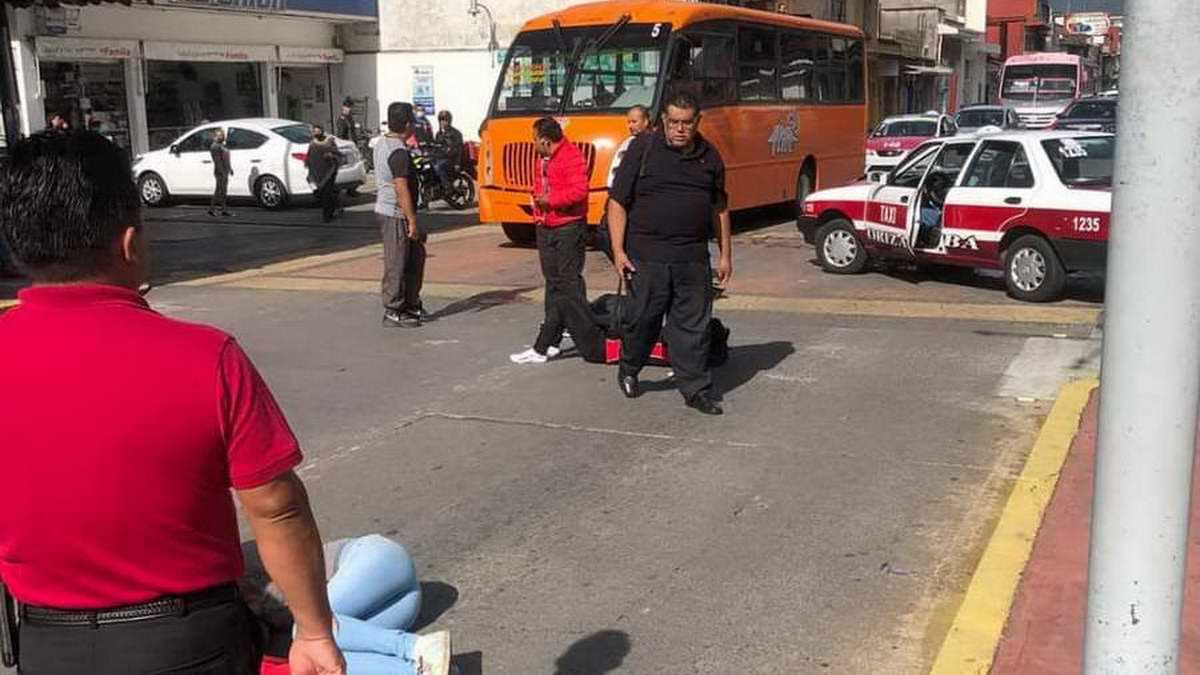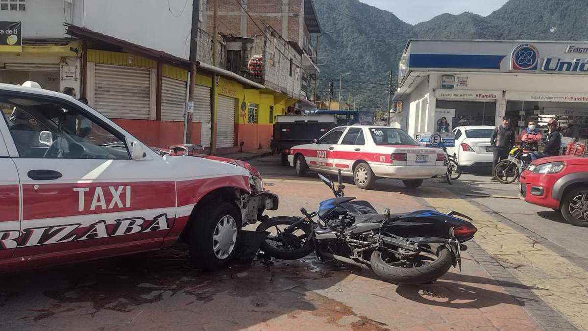 Justo antes de llegar a los Arcos a la altura de la farmacia la Unión, un taxi Tsuru número económico 1235 de Orizaba realizó un corte de circulación sin las debidas precauciones, esto ocasionó que la motocicleta se impactara en la defensa del vehículo de alquiler.