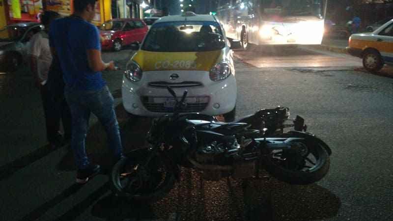 Córdoba, Ver.- Un motociclista se estrelló contra un taxi cuyo chofer en forma irresposanble hizo un corte de circulación absurdo. No obstante, lo aparatoso del accidente el piloto del biciclo solo resultó con algunos golpes.
