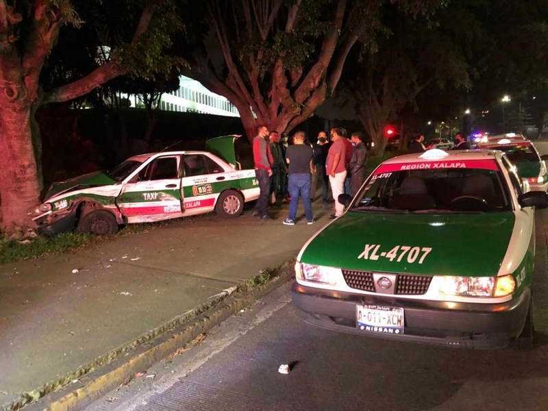 El percance se registró alrededor de las 00:15 horas de este lunes, cuando Humberto Hernández, conducía el taxi Nissan, tipo Tsuru, color verde y blanco, número económico XL646, llevando a una pareja como pasajeros.