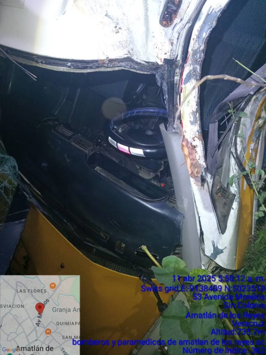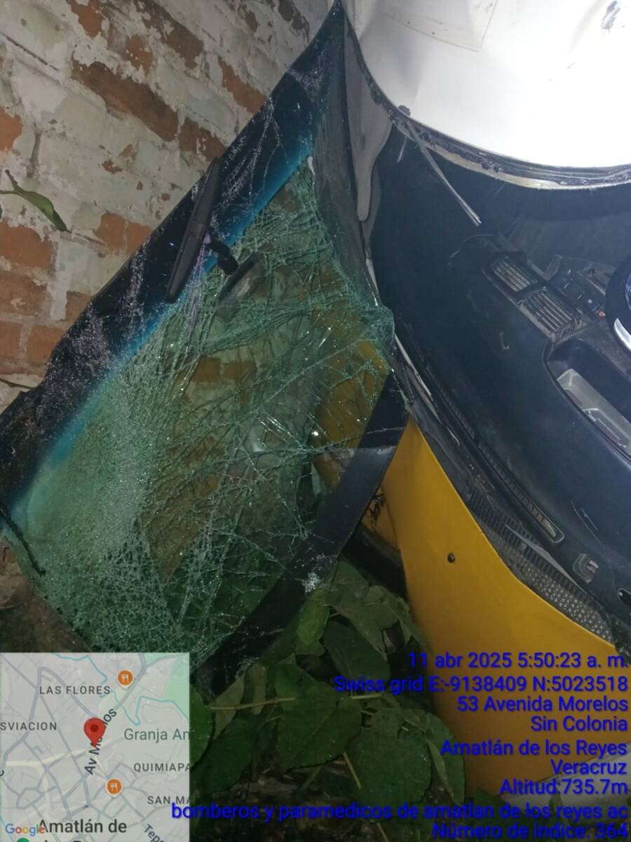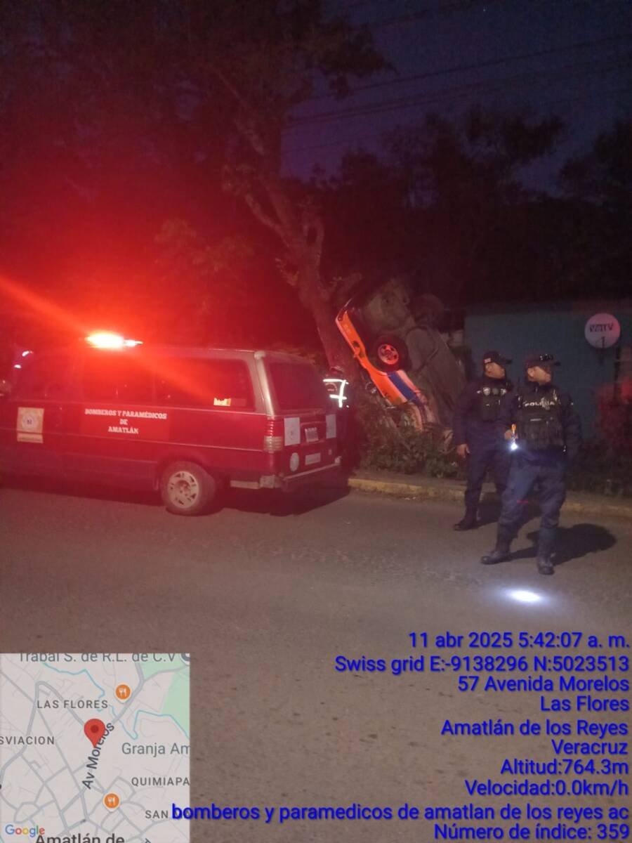 Al lugar arribaron elementos policiacos, bomberos y paramédicos del agrupamiento SAMUV de Amatlán quienes valoraron a los lesionados los cuales salieron por el parabrisas y por sus propios medios.
