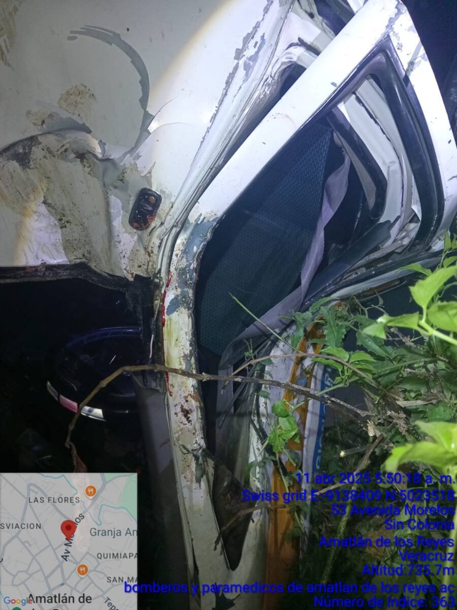 Amatlán, Ver.- Un taxista y su pasajero resultaron lesionadas de consideración, lo cual generó la rápida movilización de los diferentes grupos de auxilio además de que el accidente dejó daños materiales de consideración ya que durante la mañana de este viernes el taxi en que viajaban se volcó justo enfrente de la clínica del IMSS