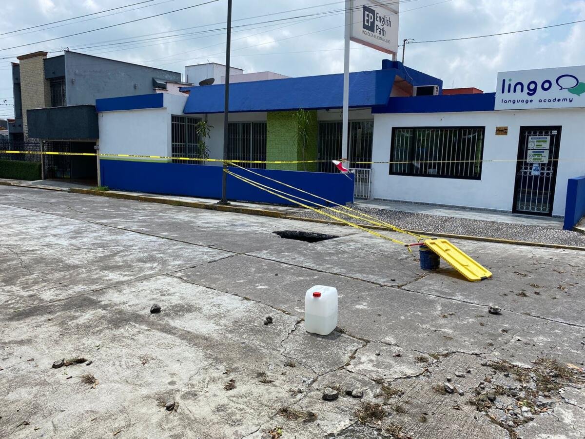 Córdoba, Ver.- 18/09/2024.- Lós vecinos de la calle 9 bis piden a los padres de familia que tienen hijos en la ESBAO a que les recomienden a abstenerse de pasar por el socavón, pues su curiosidad de conocer su profundidad, puede provocar un accidente mayor, debido a que el pavimento ya presenta hundimiento.