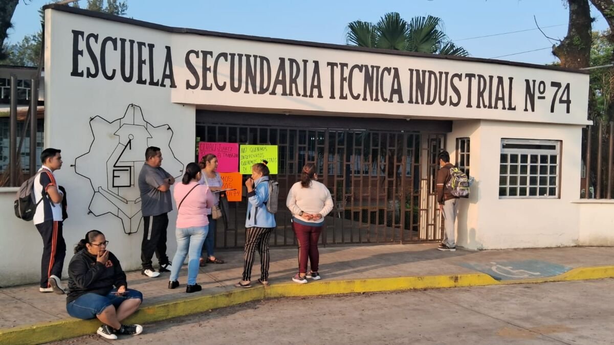 Ixtaczoquitlán, Ver.- Padres de familia de la Escuela Secundaria Técnica 74 de Ixtaczoquitlán, se manifestaron la mañana de este jueves en el exterior del plantel para exigir a las autoridades educativas se cubra la falta de docentes que, desde hace cinco años ha afectado a los alumnos de este plantel y que ha generado que algunos grupos en los dos ultimo ciclos escolares no reciban instrucción en algunas materias, entre ellas, matemáticas.