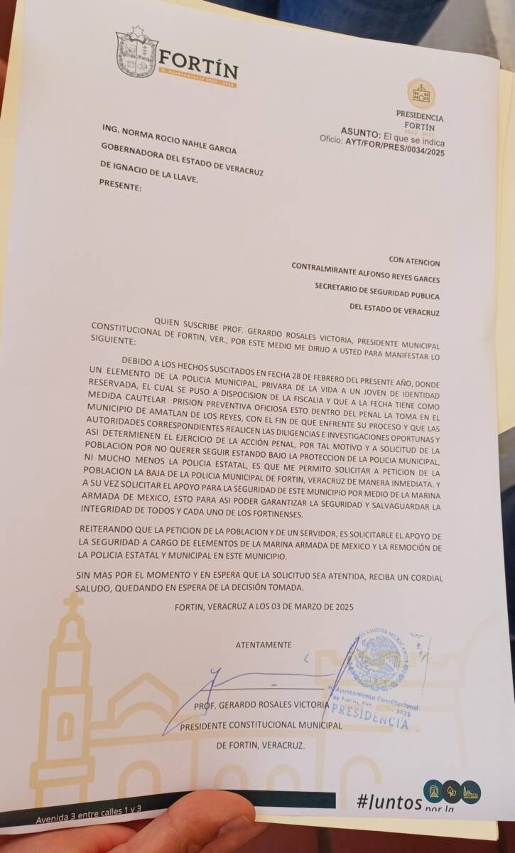 Los quejosos señalaron que la Policía Municipal de Fortín no tiene la capacidad para garantizar la seguridad de los fortinenses, en cambio, exigen el ingreso de la Marina.