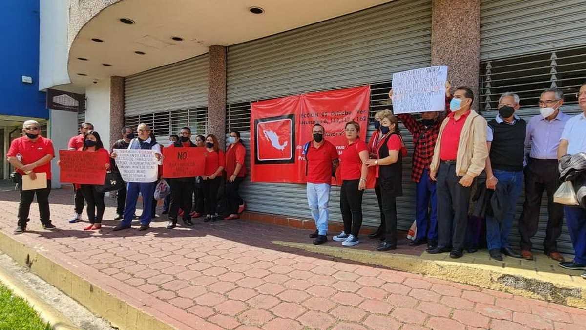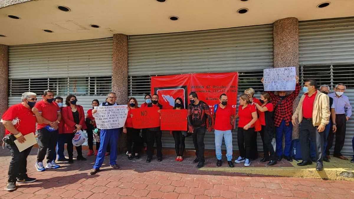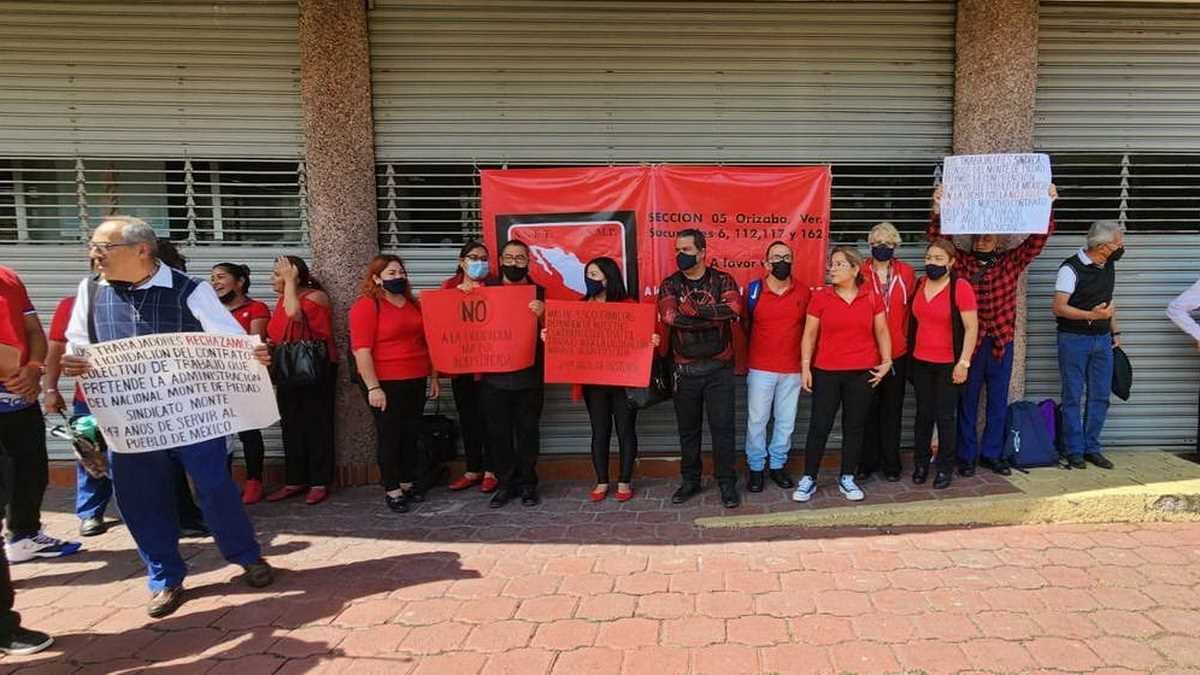 Orizaba, Ver.- Integrantes de la Sección 5 del Sindicato de Trabajadores del Nacional Monte de Piedad con sede en Orizaba se sumaron a la protesta nacional, para impedir la liquidación del Contrato Colectivo de Trabajo pues aseguran con ello el director general Javier de la Calle Pardo busca quitar casi todas las prestaciones a sus empleados.