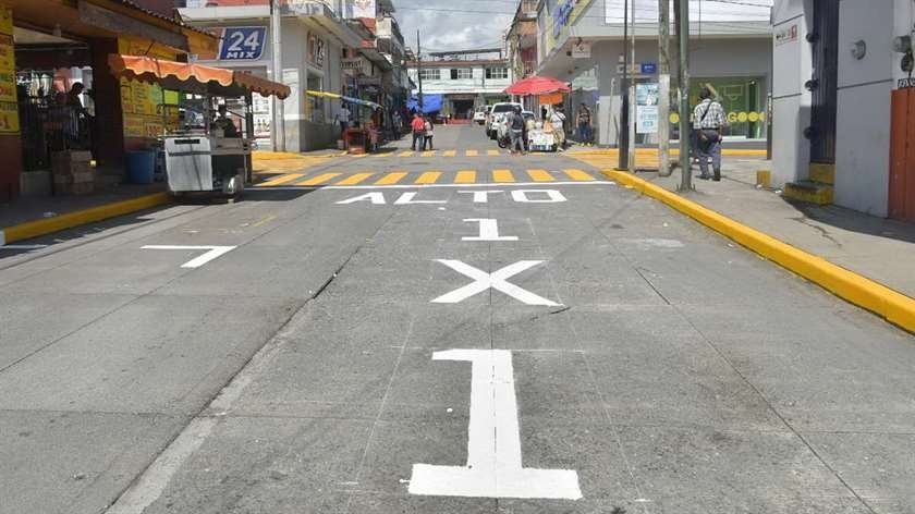 Estos trabajos se realizan en conjunto con el área de Parquímetros para el balizamiento y señalamiento, a fin de que el conductor tenga claro lo que debe hacer en cada crucero, en donde ya no hay preferencia y debe efectuar un alto total; en una primera etapa se ha implementado el 1 x 1 en la avenida 6 con calles 9, 11, 13 y 15; así como en la avenida 4 calles 1, 13 y 14.
