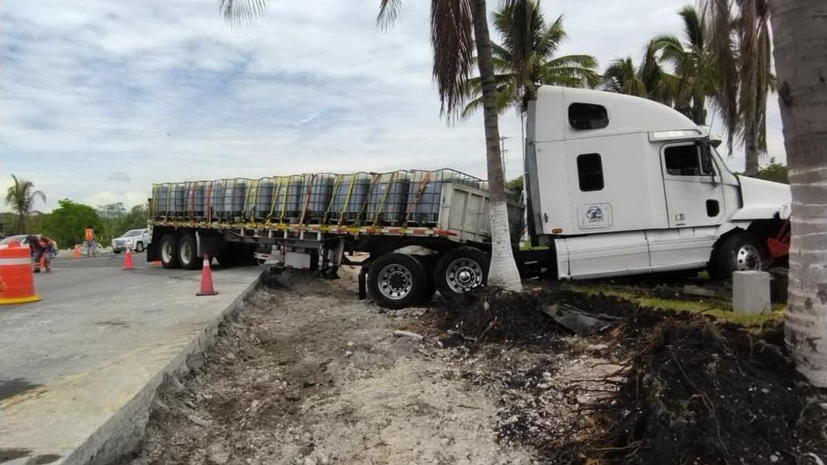 Los hechos ocurrieron cerca de la caseta de Plan del Río cuando un tractocamión que llevaba acoplada una plataforma cargada con galones embistió a una camioneta y la arrastró varios metros hasta dejarla volcada.