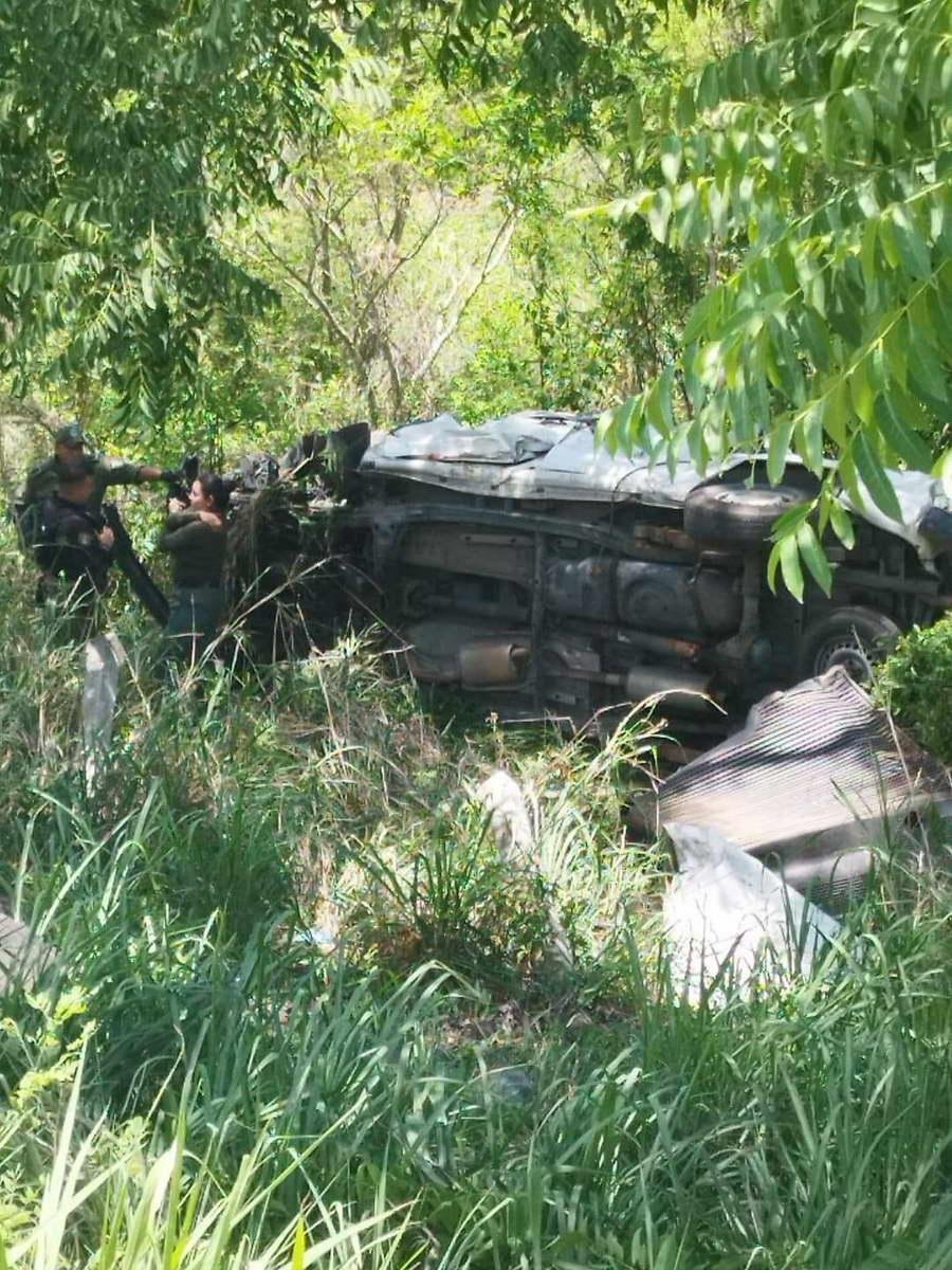 Tras acordonar la zona, la Fiscalía Regional ordenó la extracción de los cuerpos prensados y ordenó su traslado sl Semefo abriendo carpeta de investigación