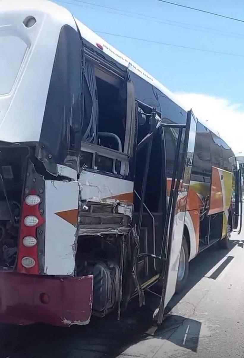 El accidente se registró durante la tarde de este jueves, debido a la imprudencia de un chofer de la mencionada línea el cual al no importarle ni su propia vida provocó este accidente que dejó al menos tres personas lesionadas y varias con crisis nerviosa además de daños materiales de consideración.
