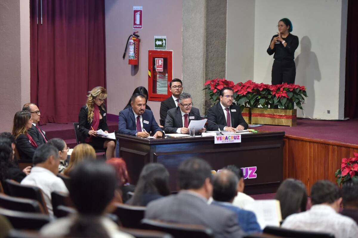 Xalapa, Ver., 19 de noviembre de 2025.- Las diputadas Nallely Mendoza Camarillo, Imelda Garrido Alvarado y Miriam García Guzmán, presidenta, secretaria y vocal respectivamente de la Comisión Permanente de Turismo recibieron la comparecencia del titular de la Secretaría de Turismo (Sectur), Igor Fidel Rojí López, en la glosa del Primer Informe de Gobierno.