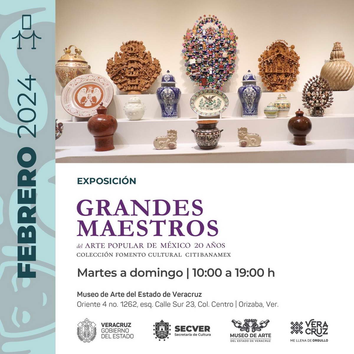 Orizaba, Ver.- Luego de una larga y exitosa temporada, este fin de semana, sábado 3 y domingo 4 de febrero, se lleva a cabo la última jornada de actividades paralelos a la exposición Grandes Maestros del Arte Popular de México 20 años, Colección Fomento Cultural Citibanamex, A.C. que se exhiben en las salas temporales del Museo de Arte del Estado (MAEV) informó la informó la encargada de la jefatura de este lugar, Isis Varinia Castro Ramos.