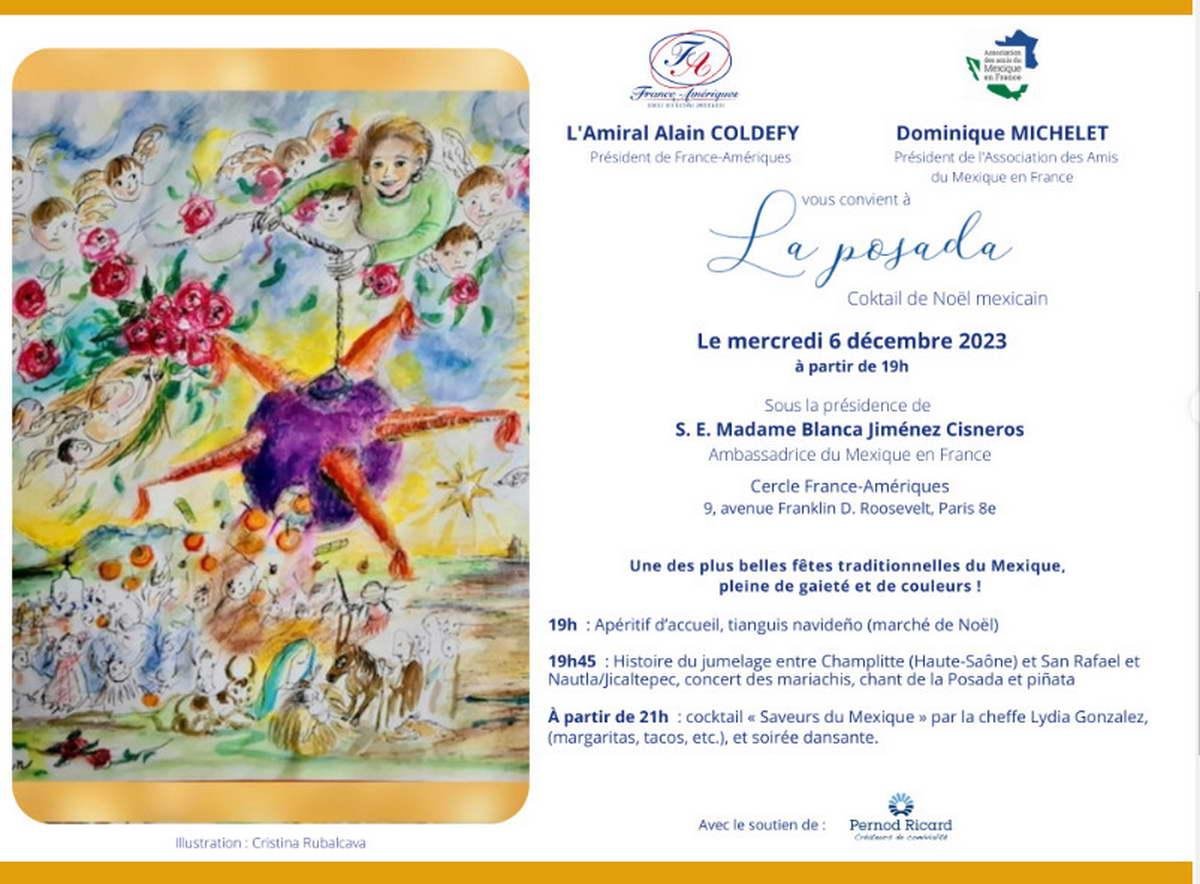 Como cada año, la Asociación de los Amigos de México en Francia convocó a su tradicional posada. Este festejo tuvo lugar el 6 de diciembre en los suntuosos locales del Círculo France-Amériques.