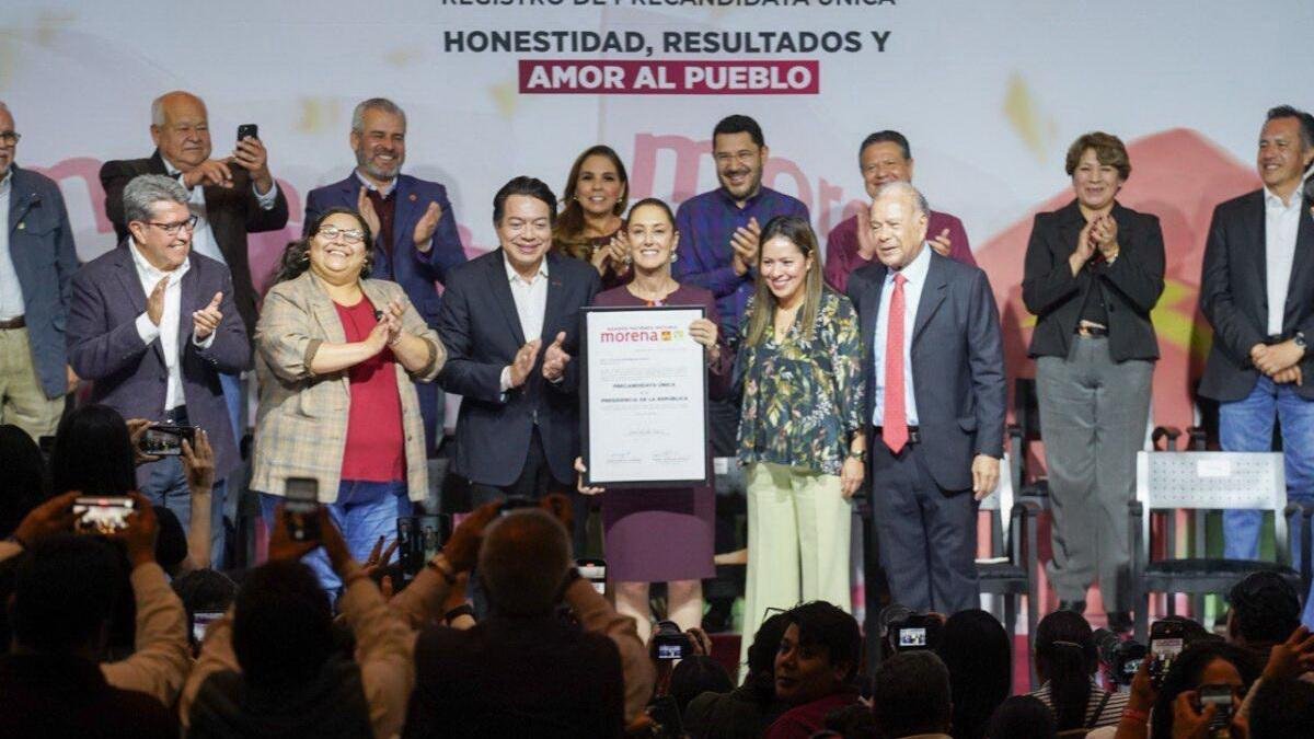 - “Hoy deja de ser coordinadora para convertirse en nuestra precandidata única a la presidencia”, celebró el dirigente nacional de Morena, Mario Delgado