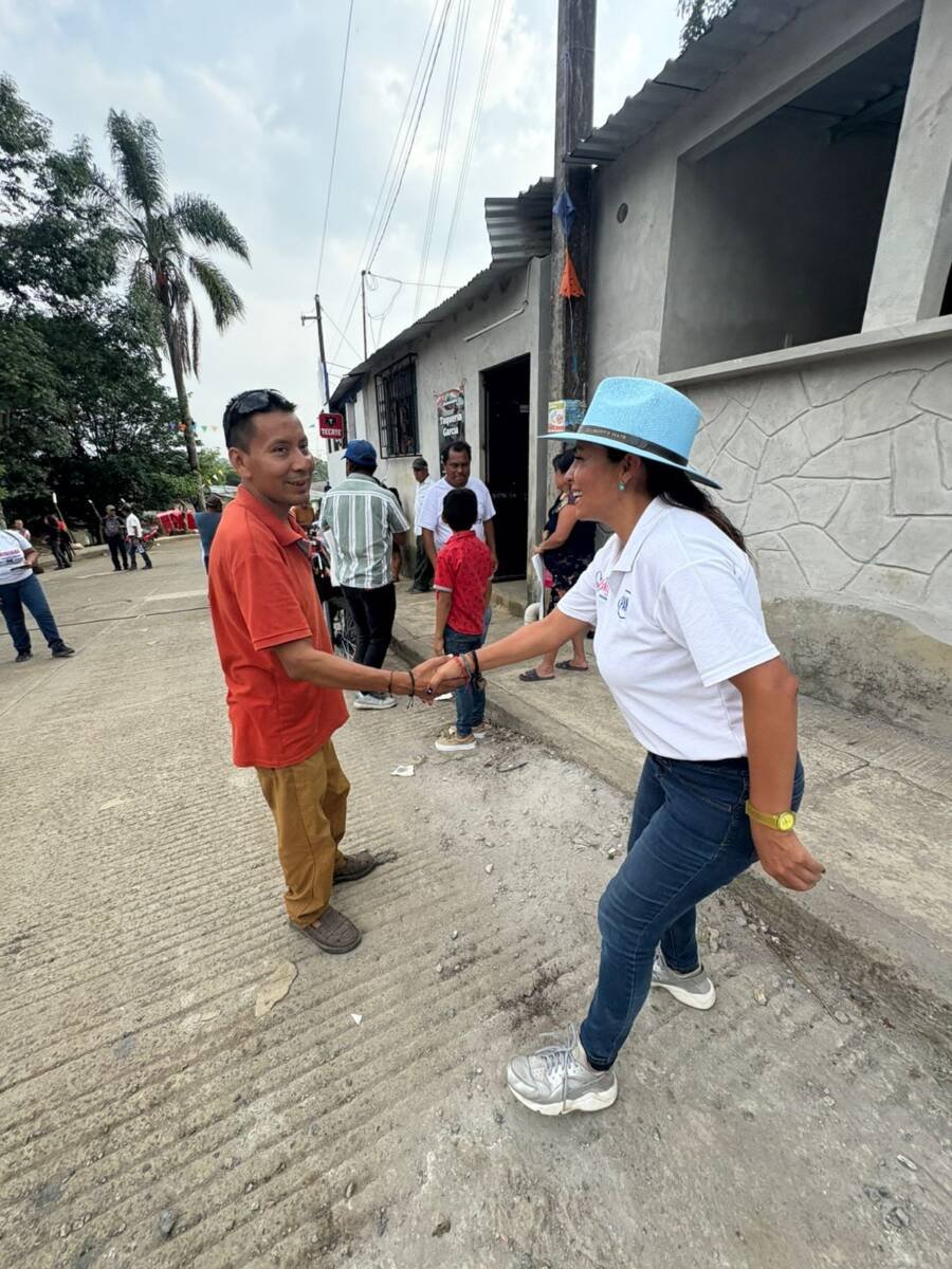 Con entusiasmo y cariño fue recibida Viridiana Bretón acompañada de los candidatos a síndico y regidurías; Regulo Maguin Lopez, Diana Zureima Vidal Martinez y Francisco Javier Mendez Galán, respectivamente, quenes saludando en casa por casa, dieron a conocer cada una de las propuestas de la fórmula blanquiazul.