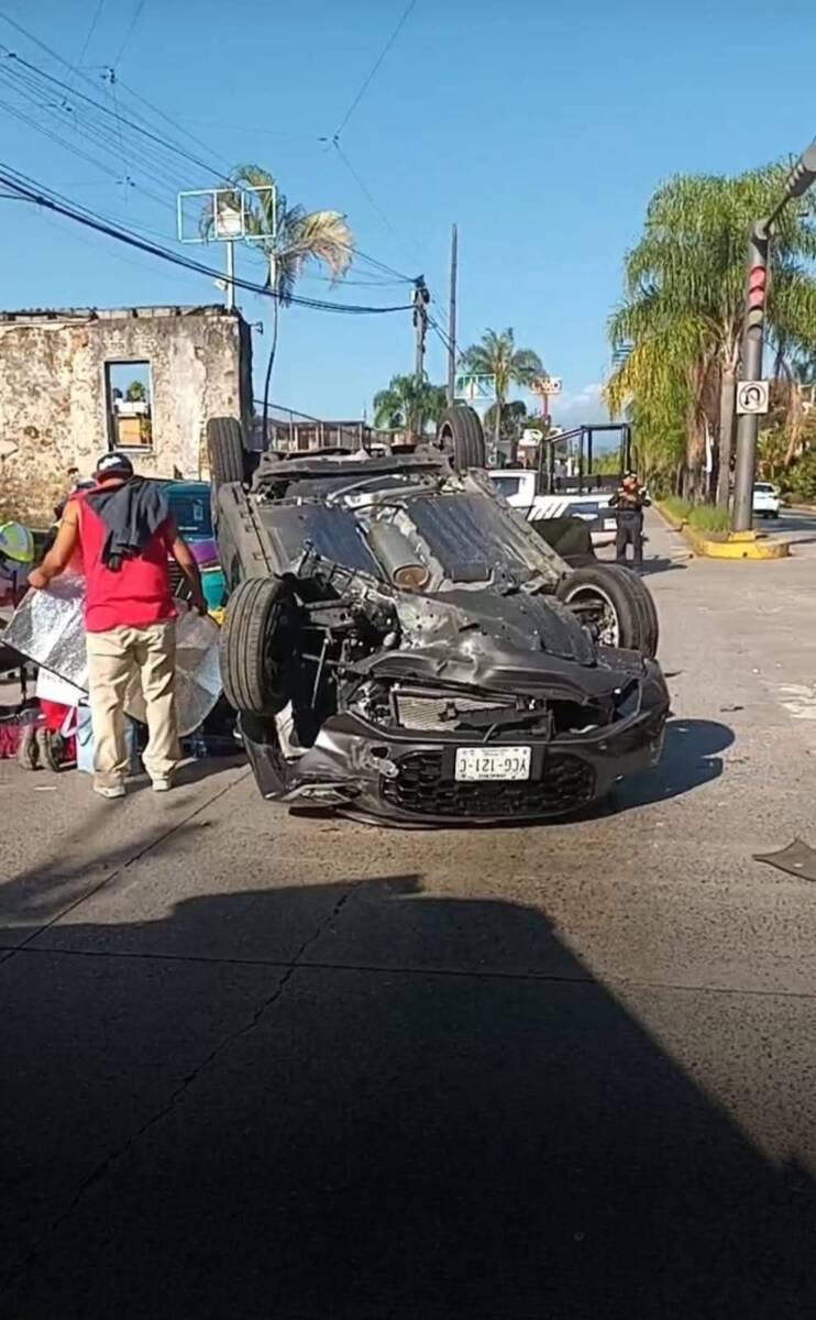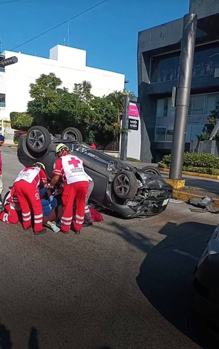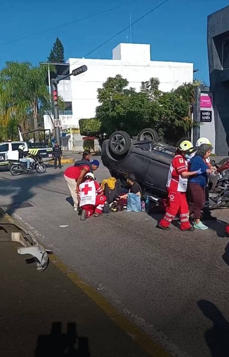 De acuerdo con los primeros reportes, un automóvil compacto marca Suzuki terminó volcado con las llantas hacia arriba tras ser presuntamente impactado por un vehículo Nissan de color blanco, cuyo conductor no habría respetado la preferencia de paso.