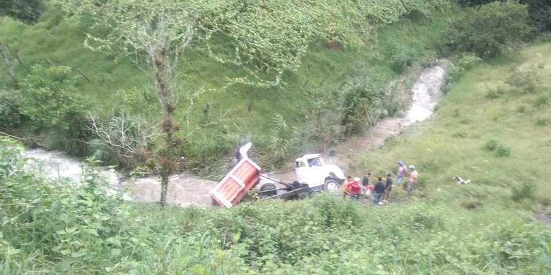 Coscomatepec, Ver.- Una persona lesionada y pérdidas incuantificables, dejó la tarde de este miércoles la volcadura de un camión de volteo en la carretera que comunica con la comunidad de Tlacuiloloxtla.