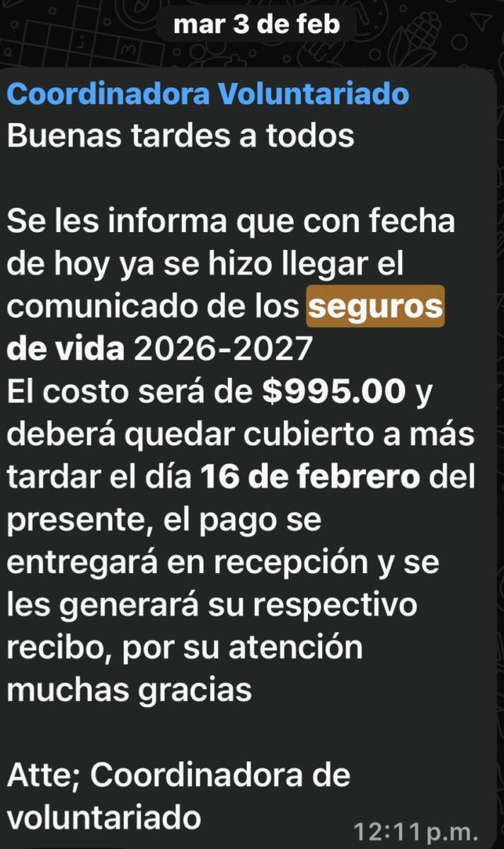 Los voluntarios señalaron que, en administraciones anteriores, se otorgaba un apoyo parcial del 50 por ciento a algunos elementos; sin embargo, aseguran que actualmente la situación es distinta y que incluso se les ha solicitado “prestar” dinero para cubrir el pago del seguro, bajo el argumento de que la delegación atraviesa por dificultades financieras y se encuentra en números rojos. Según refieren, la propuesta consiste en reintegrar el recurso de manera paulatina conforme cumplan con sus horas de servicio.