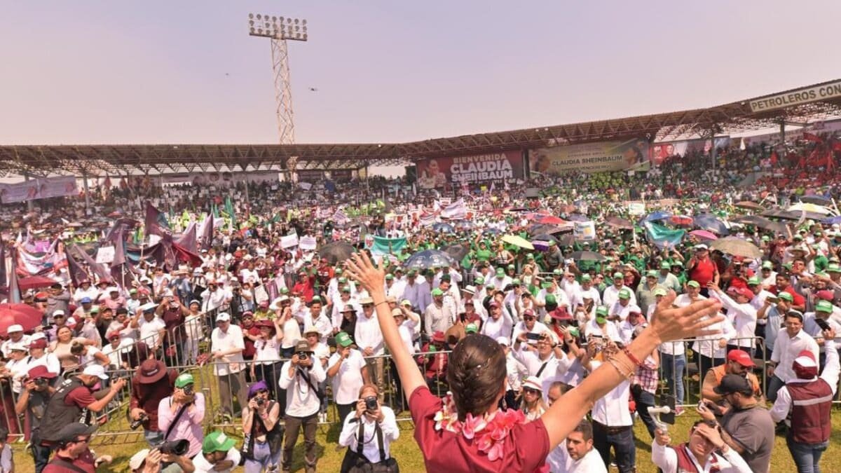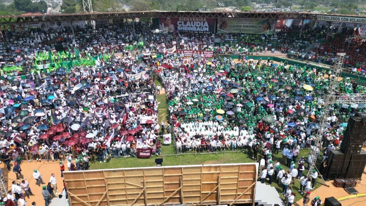 Ante petroleros, maestros, militantes, ciudadanos presentes del sureste veracruzano, Sheimbaum Pardo calificó con un 10 la trayectoria de Rocío Nahle y subrayó que el próximo 2 de junio se reescribirá nuevamente la historia de México.