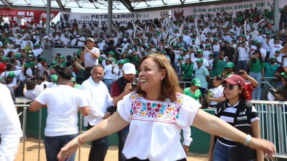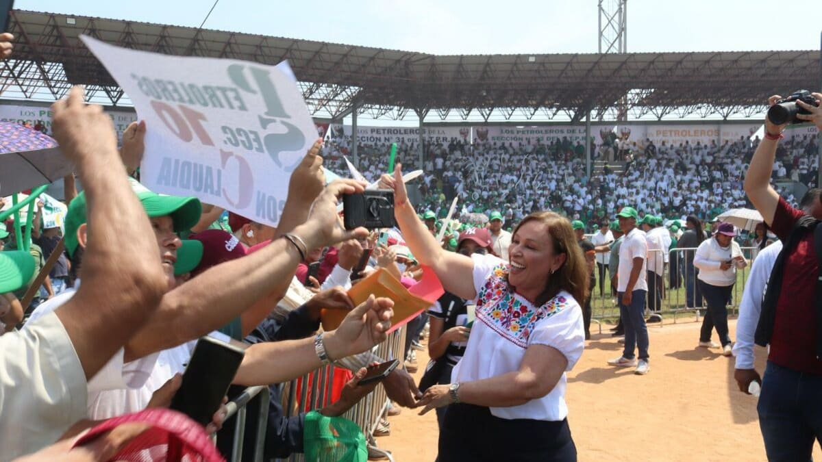 “Hoy vengo a decirles aquí en Minatitlán, con la presencia de una amiga, compañera, capaz de construir una refinería que no puede estar aquí arriba porque no ha iniciado su campaña pero vengo a decirles, a preguntarles, ¿quién es la próxima gobernadora de Veracruz?”, cuestionó a lo que los presentes quienes respondieron: ¡Rocío, Rocío!