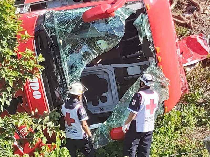 Tihuatlán, Ver. Por lo menos 34 pasajeros de un autobús de la línea ADO resultaron lesionados tras volcar la unidad en la que viajaban procedentes de la ciudad de Papantla teniendo como destino la Ciudad de México, diez de ellos son niños y cinco adultos son reportados en estado crítico.