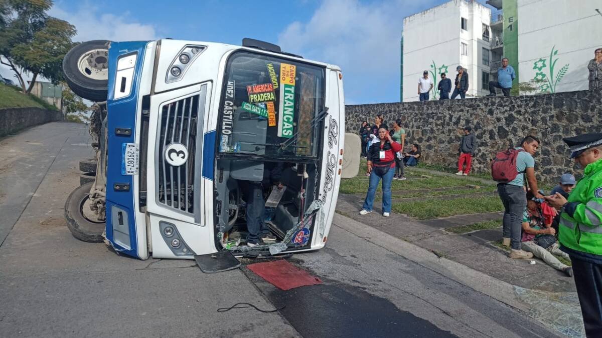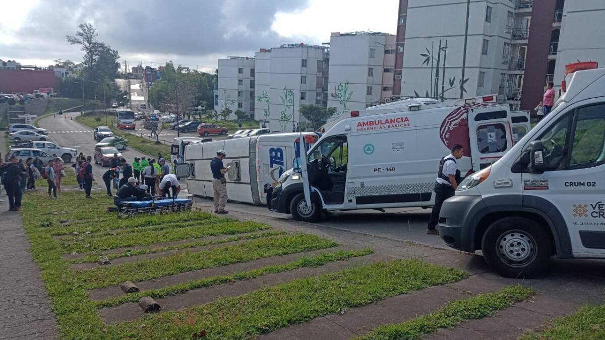 Emiliano Zapata, Ver.- La mañana de este viernes, un autobús de la línea Autotransportes Banderilla (ATB), de la ruta Trancas-Campo de Tiro, volcó sobre la avenida Álamos del fraccionamiento La Pradera, hasta el momento, se reportan casi una decena de lesionados, tres de ellos de gravedad.
