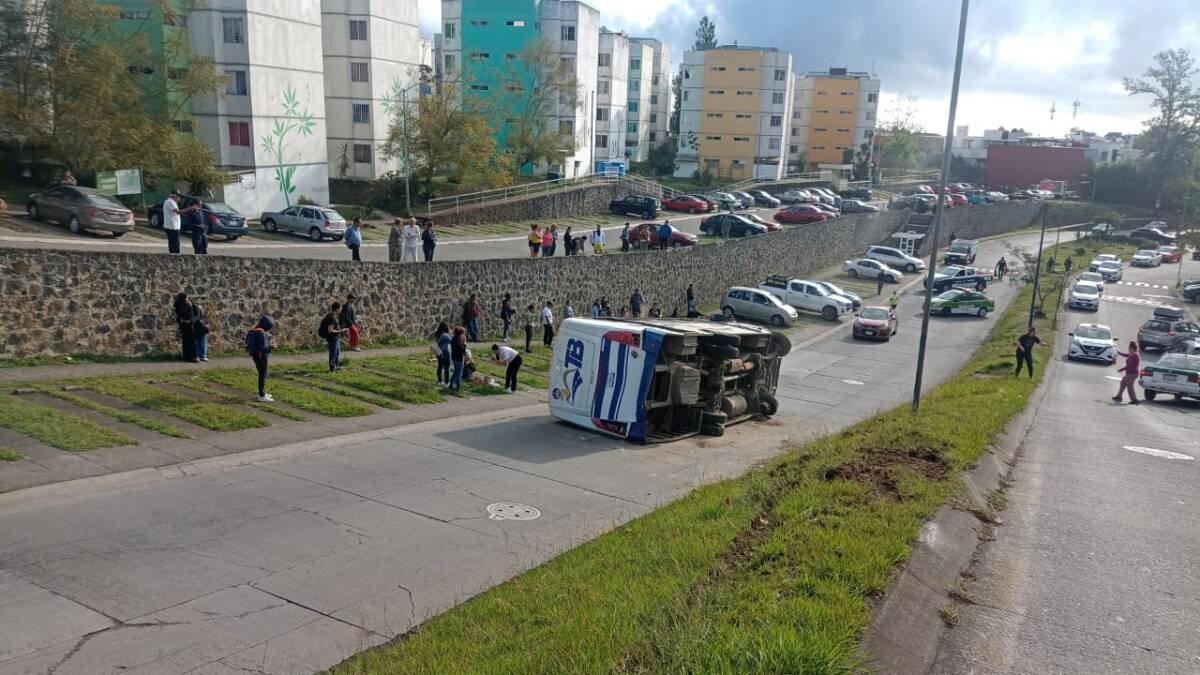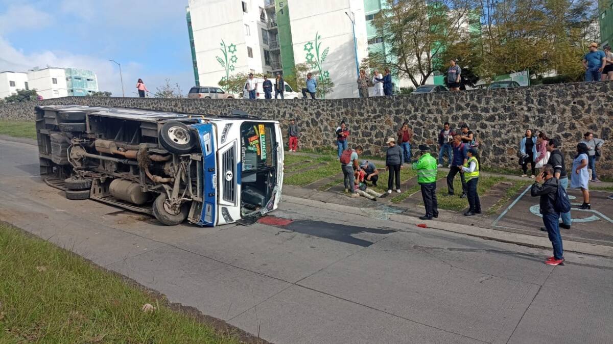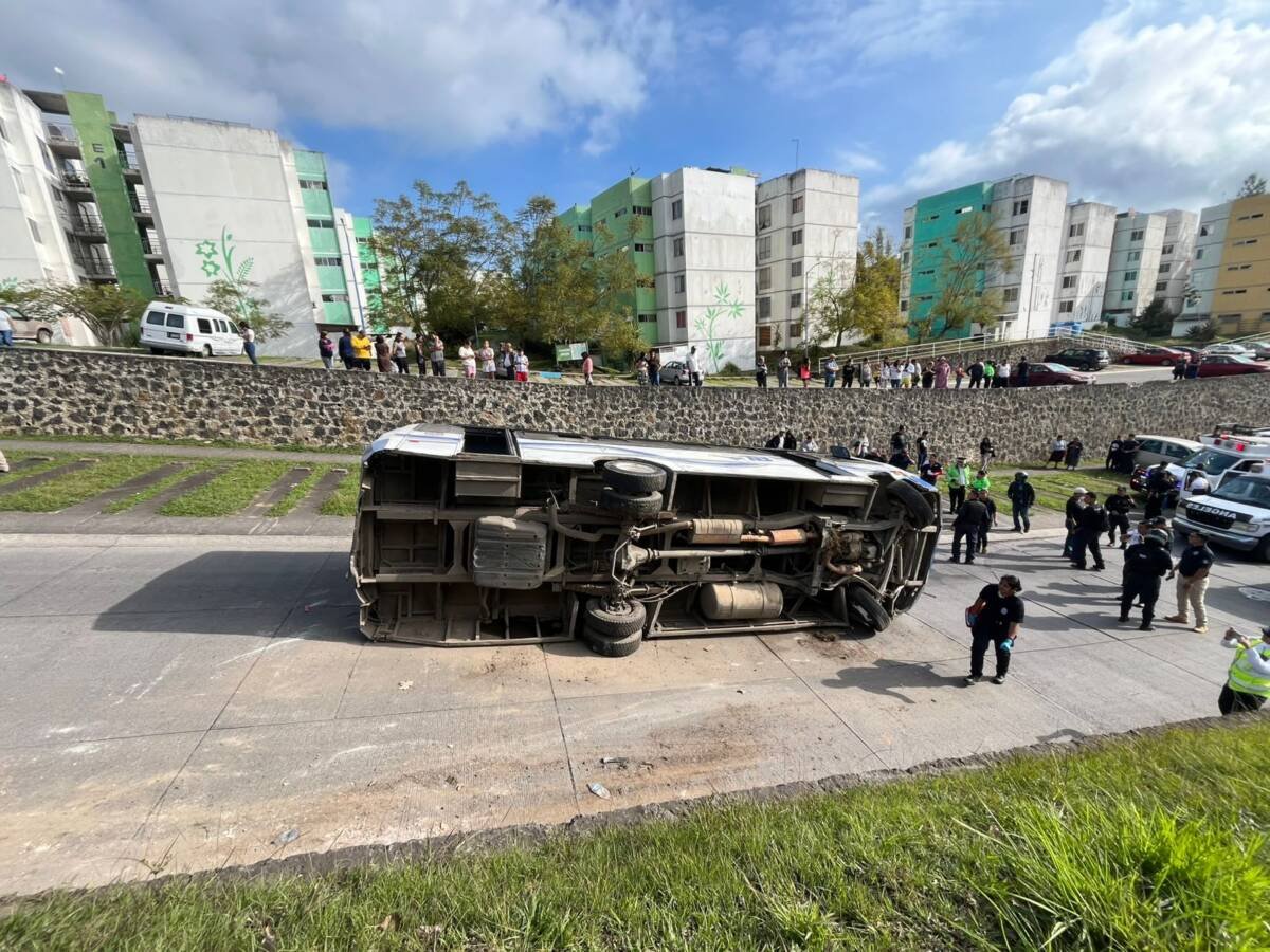 Los hechos ocurrieron cuando iba sobre un carril de bajada y, al parecer, el chofer de la unidad perdió el control de la unidad por una falla mecánica y se fue contra el camellón para terminar volteado sobre el carril contrario.