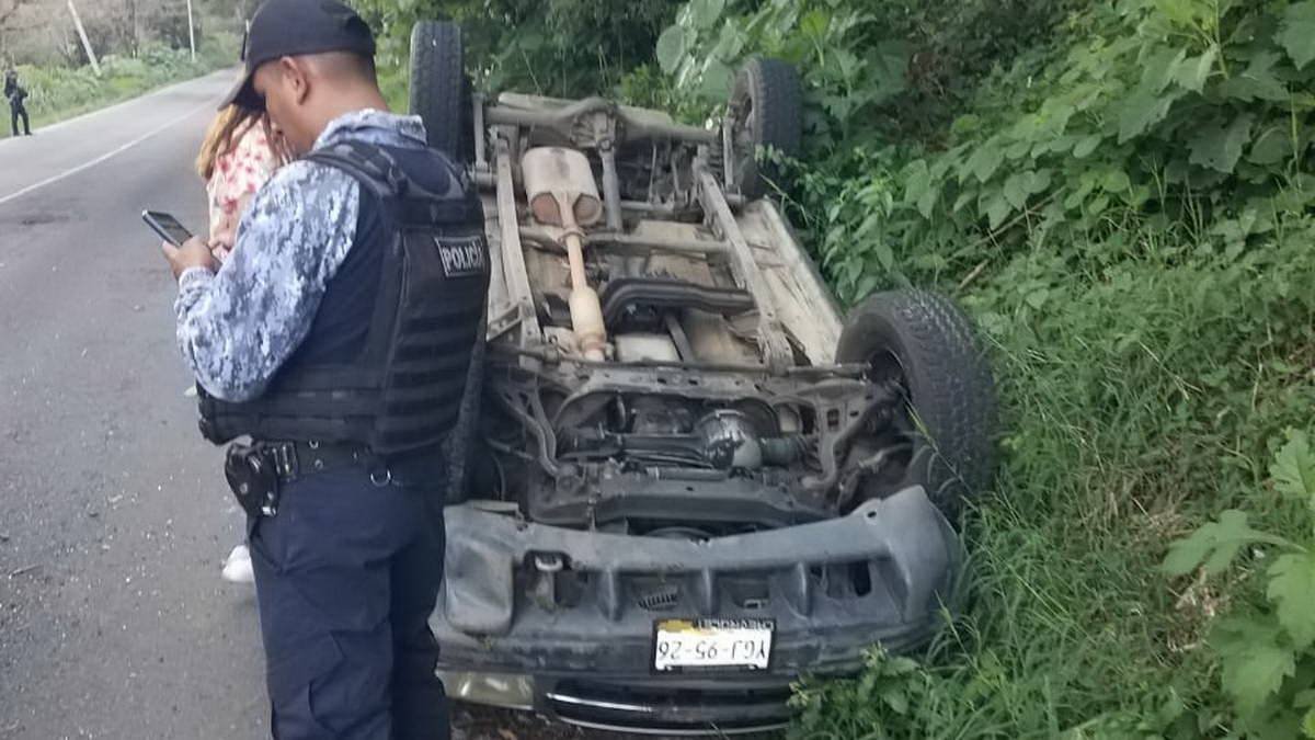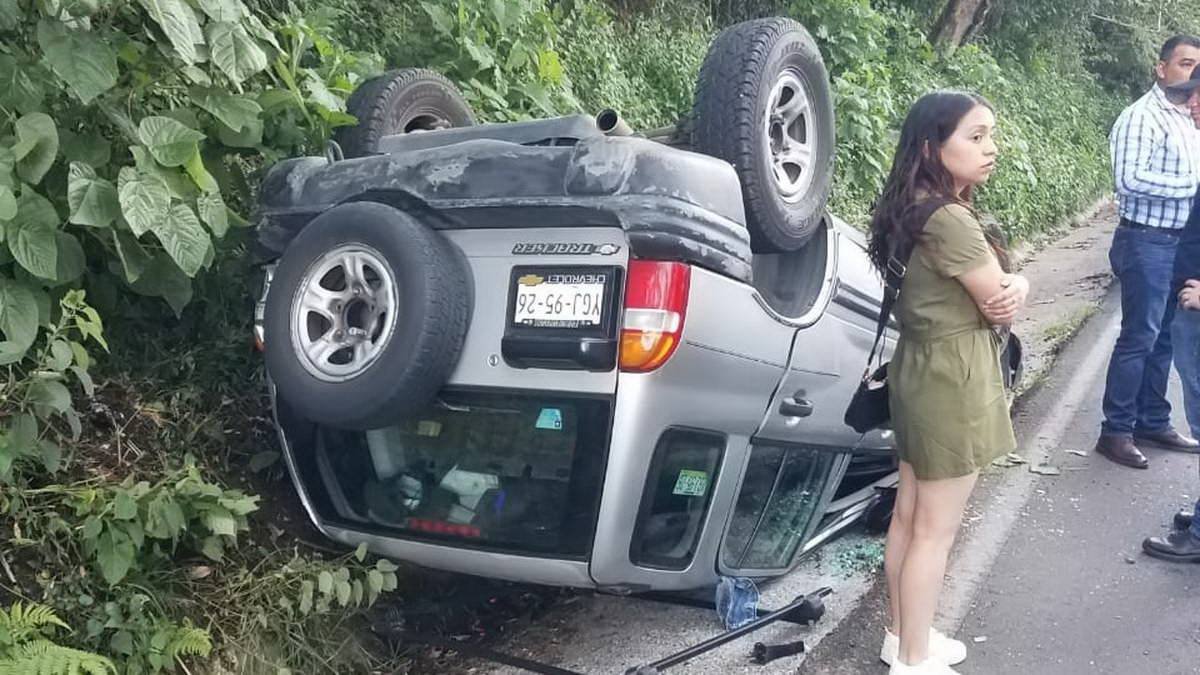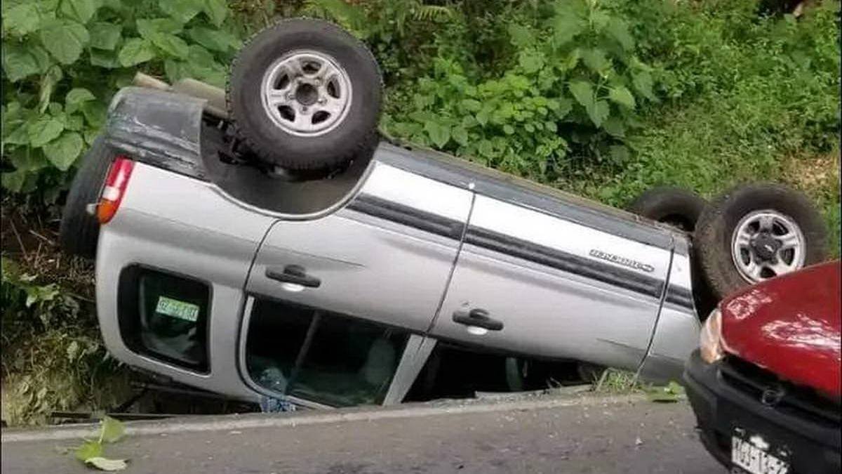 Tomatlán, Ver.- El conductor de una camioneta Chevrolet-Tracker resultó lesionado durante la tarde de este domingo, debido a que su unidad al presentar una falla mecánica se quedó sin frenos, terminando volcada sobre la carretera federal Fortín-Conejos a la altura de la comunidad Dos Caminos.
