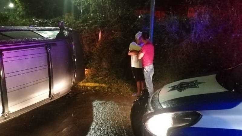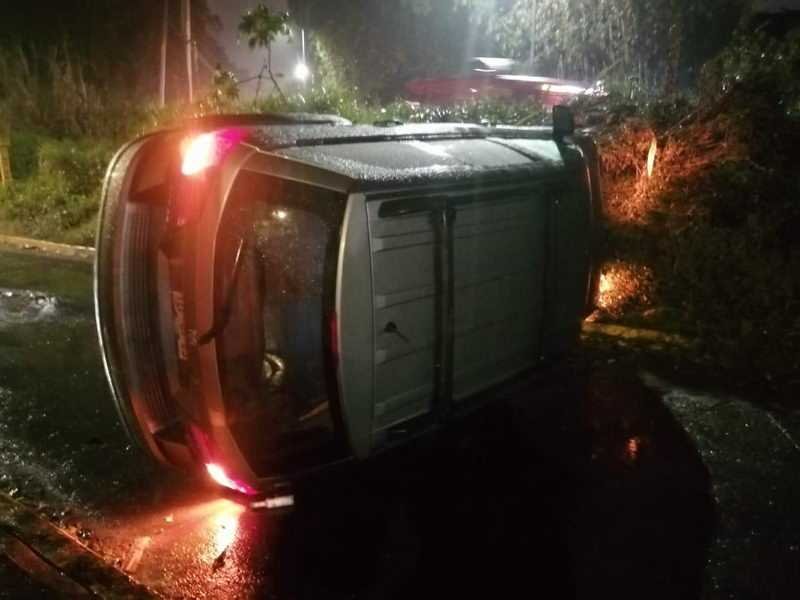 Los hechos ocurrieron alrededor de las 19:15 horas cuando un hombre conducía una camioneta Dodge Journey con placas de circulación TZF 6923 quien perdió el control del vehículo por lo que terminó volcado.