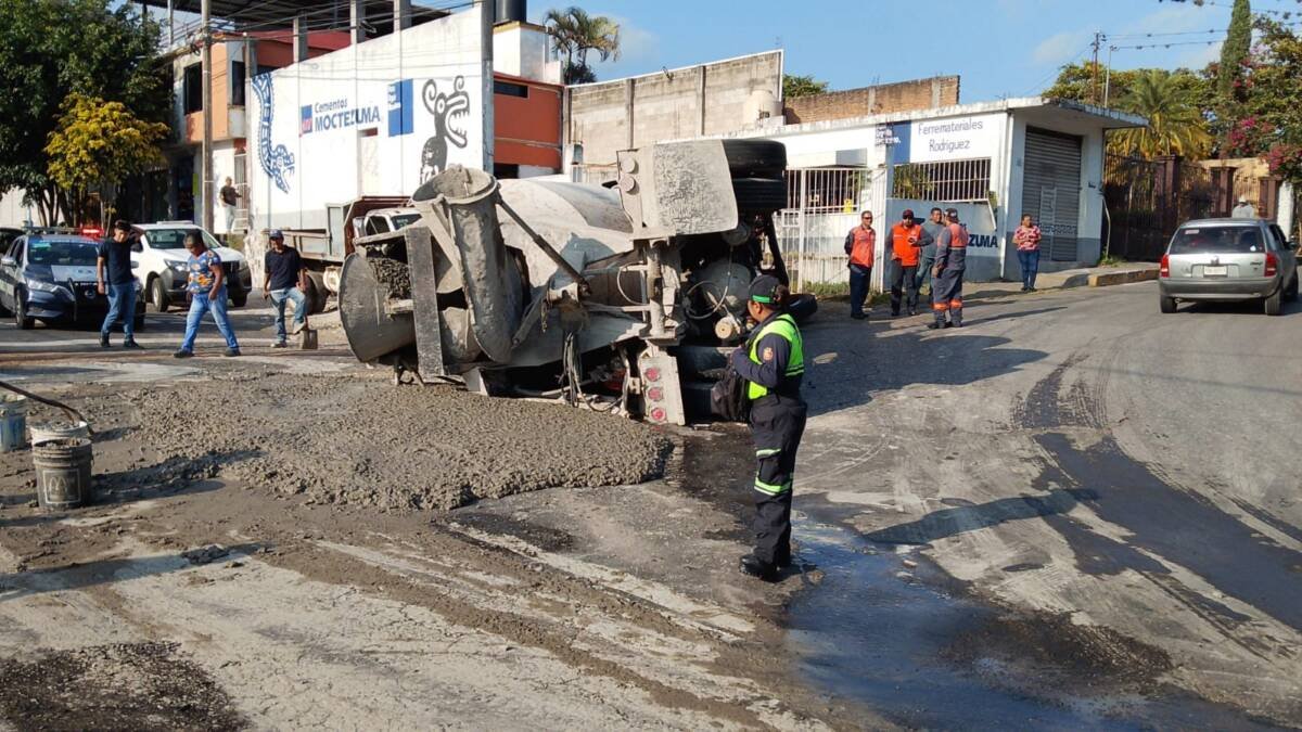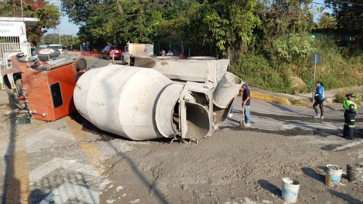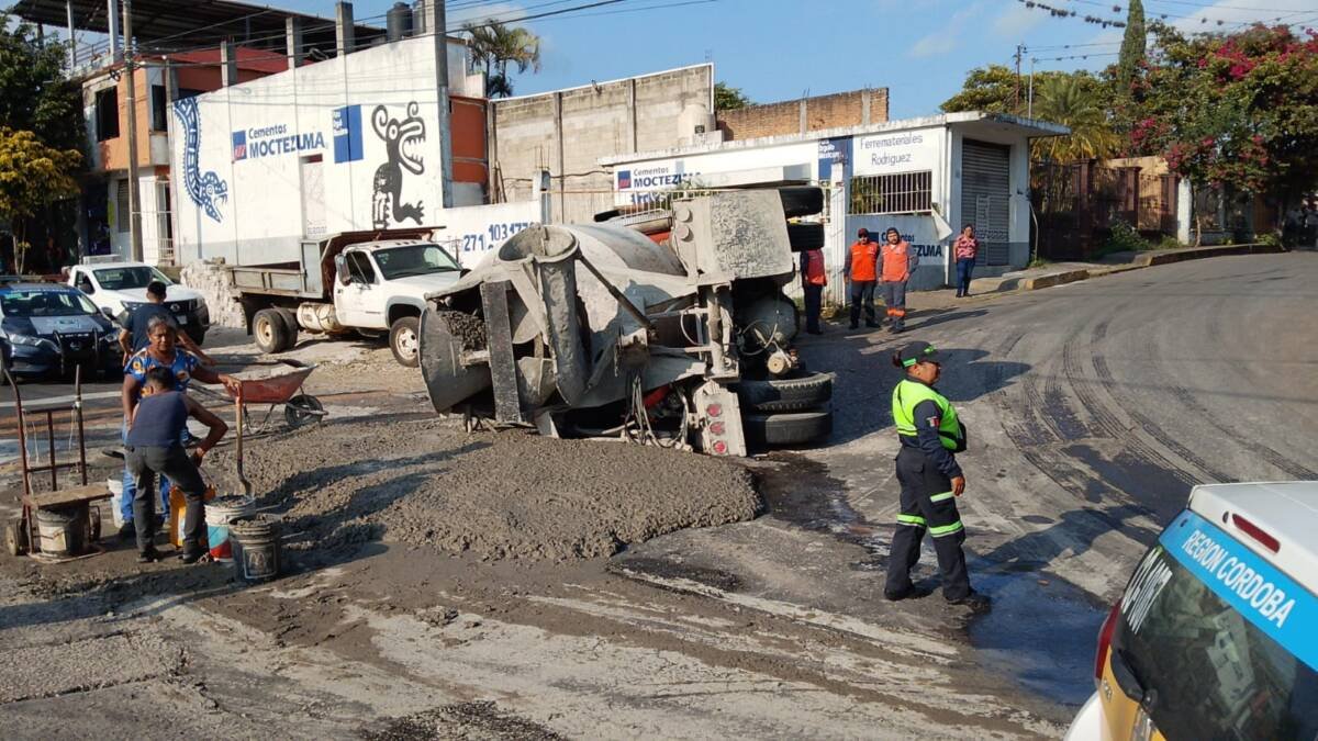 Córdoba, Ver.- La tarde de este día, una revolvedora cargada con mezcla de cemento volcó al perder estabilidad cuando el operador intentó tomar una vuelta sobre la carretera Córdoba–Amatlán, a la altura de la calle 49, procedente del Ingenio San Miguelito.
