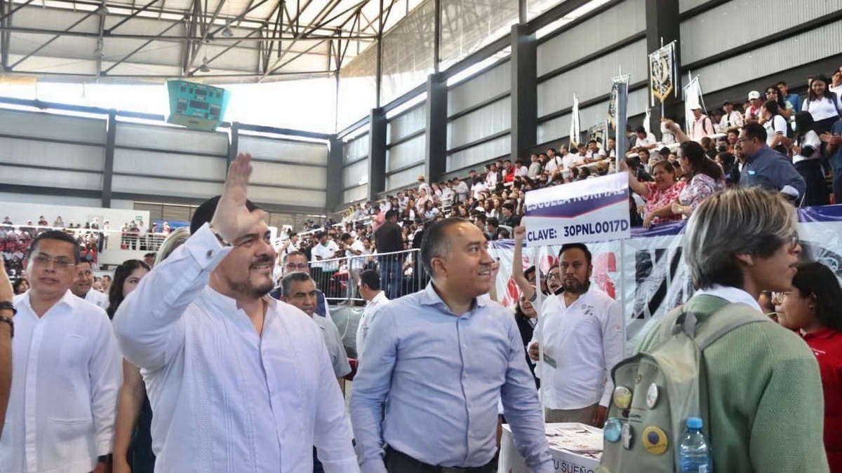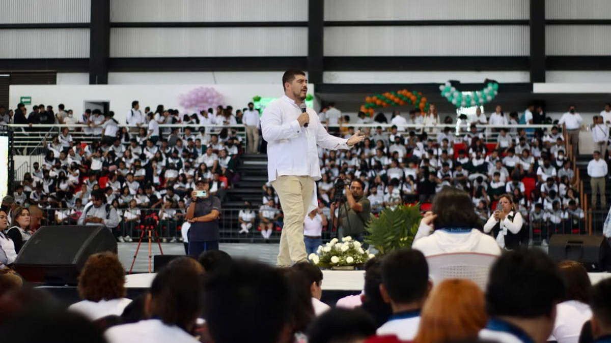 El secretario de Educación, Zenyazen Escobar García, se dirigió a las y los asistentes en una conferencia magistral cuyo mensaje principal es que luchen por sus sueños, por más difícil que pueda parecer su realización; asimismo, detalló que el Programa Estatal de Oferta Educativa (PEOE) busca alcanzar el cero rechazo en Veracruz, a tono con el lema del presidente Andrés Manuel López Obrador de “no dejar a nadie atrás”.