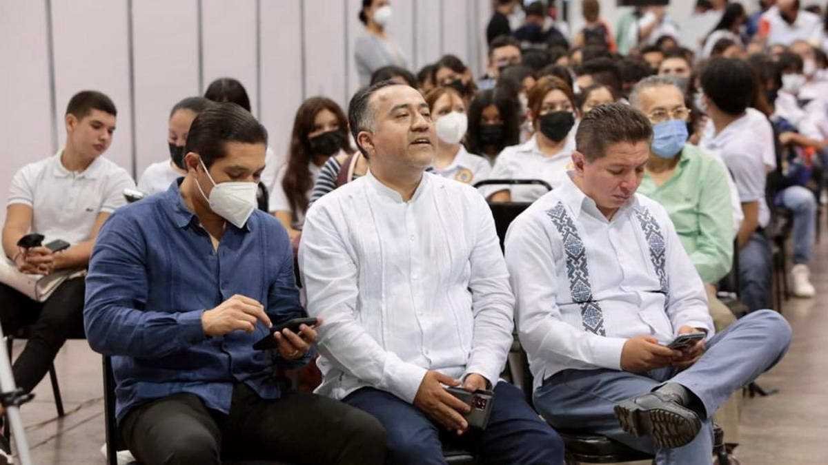 Acompañado por el secretario de Turismo, Iván Martínez Olvera; el director de Educación Universitaria, Fernando Hernández Cabañas; la diputada federal y presidenta de la Comisión de Educación en la Cámara Baja, Tania Cruz Santos, así como diputados locales y alcaldes de la región, el servidor público invitó a los presentes a aprovechar el esfuerzo que hacen las autoridades para transformar la educación en la entidad.