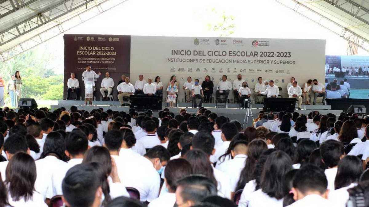 Coatzacoalcos, Ver., a 23 de agosto de 2022.- En el marco del inicio del ciclo escolar 2022-2023 en Educación Media Superior y Superior, el secretario de Educación de Veracruz, Zenyazen Escobar García, a nombre del Gobierno del Estado, anunció el inicio de los trabajos de una Escuela Normal Pública en Coatzacoalcos.